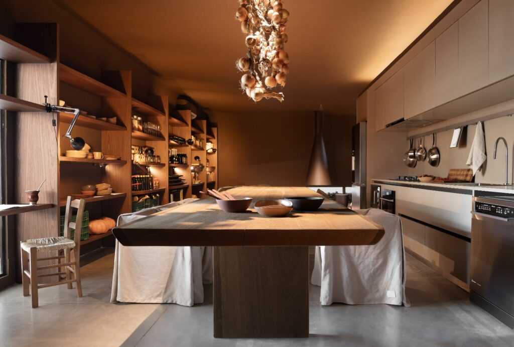 Com referências nas paisagens do Estado e na cultura dos pampas, o espaço combina materiais como madeira, tecidos e elementos naturais, explorando tons terrosos e superfícies orgânicas. O resultado é uma atmosfera que equilibra rusticidade e sofisticação, valorizando os rituais cotidianos e o convívio familiar.