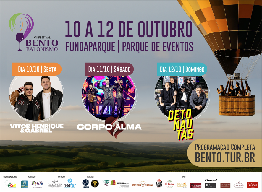 Com dias ensolarados, balões colorindo o horizonte e uma programação que uniu esporte, cultura e música, a 7ª edição do Bento Balonismo consolidou-se como um dos eventos mais esperados do calendário turístico da cidade, deixando memórias inesquecíveis e já despertando a expectativa para a próxima edição.