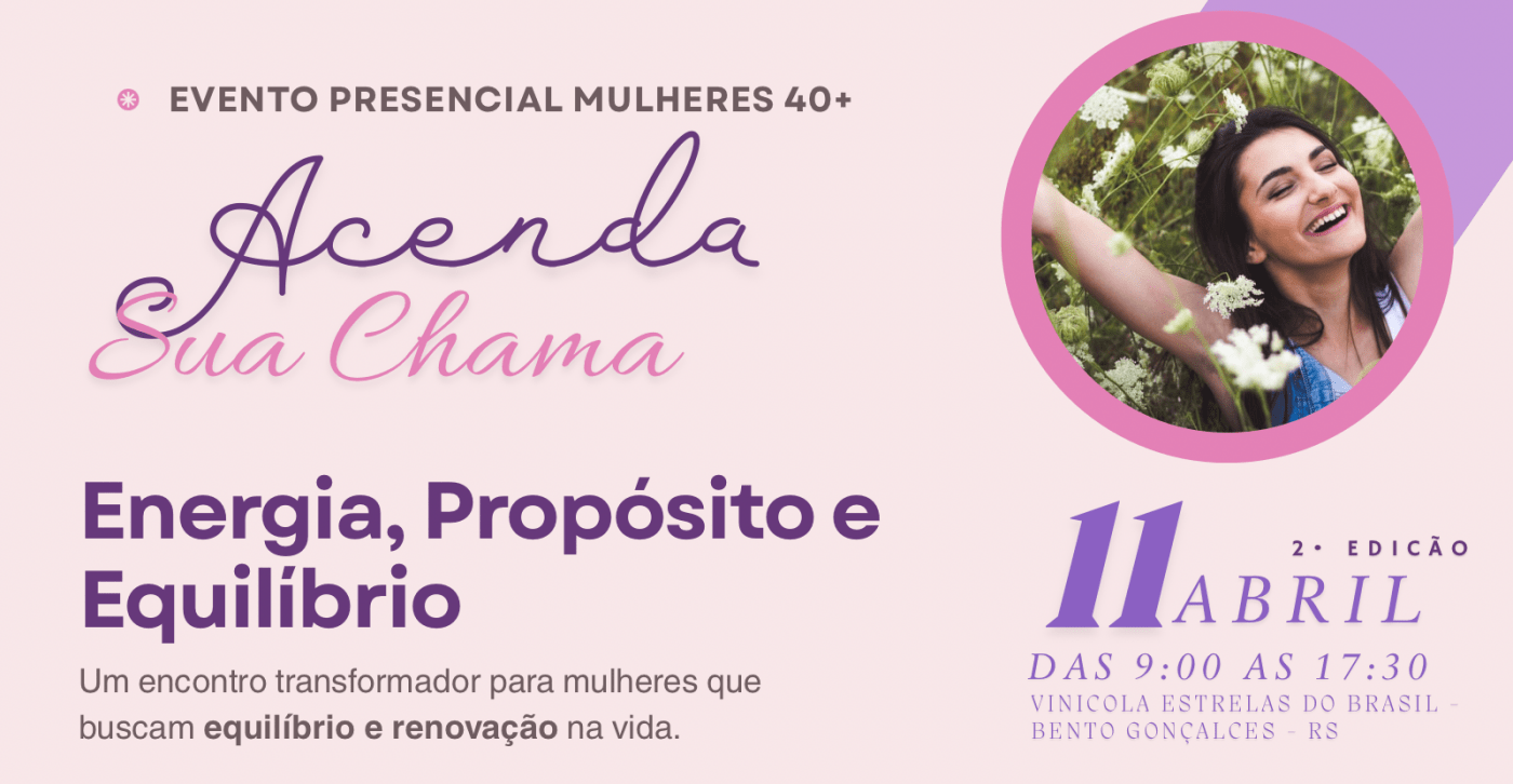 Este evento é um convite especial para mulheres a partir dos 40 anos que desejam viver com mais energia, propósito e equilíbrio no corpo, na mente e na espiritualidade.