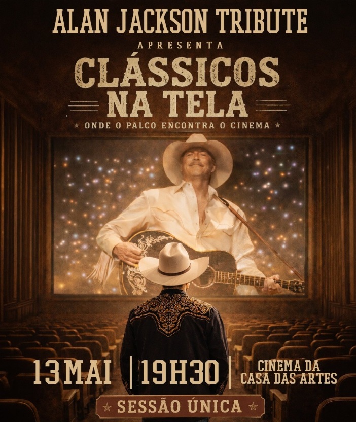 O projeto Alan Jackson Tribute, conduzido por Alan Prudêncio, apresenta o espetáculo Clássicos na Tela, uma proposta que transforma o palco em extensão da experiência cinematográfica.