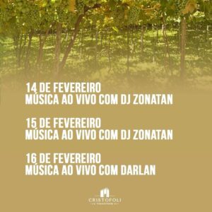 Reservas no site: https://vinhoscristofoli.com.br/experiencia/cristofoli-sunset-music-sessions-1402-1502-160226