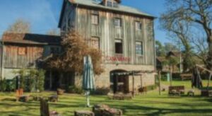 Restaurante em belo imóvel construído de pedras, situado no “Caminho de Pedras”, em Bento Gonçalves, relativamente próximo do Parque da Ovelha.