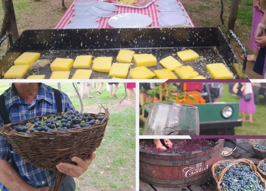 Nela você poderá colher as uvas, conhecer um pouco mais sobre o cultivo, vivenciar a pisa (forma na qual era feito o vinho no passado), em degustar bons vinhos, tudo ao embalo de músicas e danças tradicionais. E para fechar a comemoração, o clássico merendin, com itens típicos da colonização italiana, como Salame, queijo, torta tirolesa, grostoli e muito mais.
